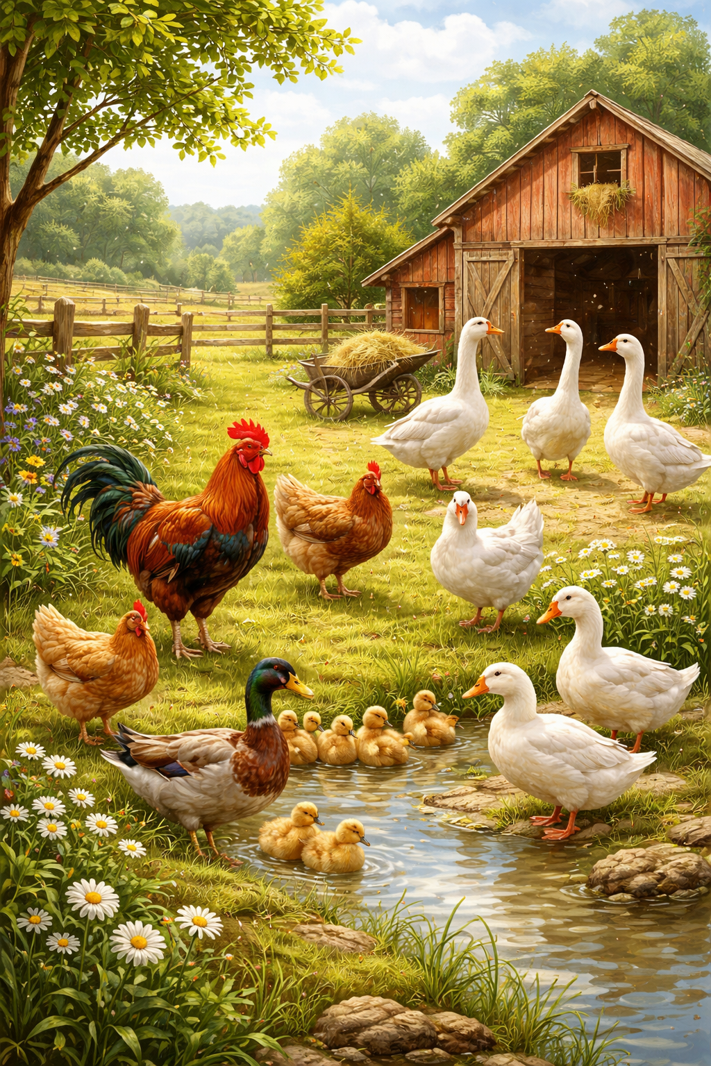 We’re a family-run farm where quacks, honks, and clucks provide the morning soundtrack. Our flock includes happy ducks, regal geese, and a chorus of chickens — and we make it our mission to keep every feathered friend healthy, comfortable, and downright joyful.